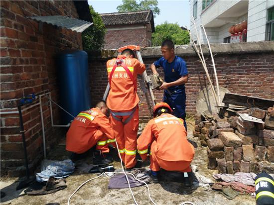 | 原标题: 8 月 18 日,株洲攸县渌田镇潞甫村井弦组桥头屋 014 号有一名老人掉落井下,请求救援。接到报警后,攸县中队立即出动 1 台救援车 6 名指战员赶赴现场救援,成功将老人救出。