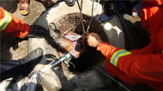 ![]() ![]() 救援队员佩戴好个人防护装备,携带 10 米安全绳等抢险救援装备下井进行救援,到达井底后,救援人员再次仔细询问老人是否受伤,并对井下环境进行了细致的检查,在确定老人不会受到二次伤害以后,用安全绳将老人固定,由井上的消防队员拉动绳索缓慢地将老人救出并送上救护车。