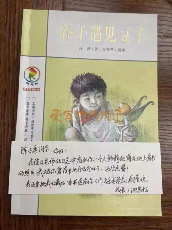 前几天,杭州采荷一小教育集团丁信小学的401班陈子柔同学收到了由校长池昌松送的一本书。随书一起收到的,还有一张写有留言的书签。 ![]() 这张纸条上写着: 陈子柔同学,你好! 在值日老师的日志中看到你一个人静静地蹲在地上看书的照片,我被你爱读书的行为打动了,为你点赞! 我还要把我收藏的一本书送给你(作者亲笔签名),希望喜欢。 校长:池昌松 校长赠书 这个孩子为什么要蹲在地上看书? 原来,上周的一个大课间,所有的同学都去操场上锻炼了。可陈子柔因为刚做完一场小手术,不能和大家一起做运动。学校有一个规定,课间活动时,教室要关灯节能。所以爱看书的她就拿了一本书来到教室门口蹲下,静静地阅读。 ![]() 那天天气很冷,一到室外就巴不得把手脚都缩进衣服里。值日老师夏丽慧在检查时经过401班门口,看到子柔一个人乖巧地蹲在角落看书,完全沉浸在阅读之中,不忍打扰。但想想外面的温度,夏老师还是忍不住问她:“你怎么不进教室去看?” 子柔抬头回复:“为了我一个人开灯,太浪费了,我在教室门口也能看。” 夏老师又问:“那你怎么不进老师办公室?” 子柔天真地说:“我不想打扰老师办公。” 接着,夏老师就不再打扰她,但在离开前,拍下了她看书的照片,发在了学校的工作群里。 当天,池校长就在群里看到了夏老师上传的工作日志,被她的身影感动。找出了一本书《谷子遇见豆子》,并在书签上附上了那则留言。 池校长说:“其实这也就是一件小事。但作为一个老师,在任何时候看到这么爱看书的孩子,都会很高兴的。我手头正好有这么一本书,是当时作者来学校交流时送给我的,上面还有作者的亲笔签名。我想,这样的一本书送给这样一个爱读书的孩子,是最合适的。我也是第一次单独送一本书给学生,希望这本书能够鼓励她,让她继续热爱阅读。” 池校长特地将这本书交给了高段校区负责人戚书记,请她专门将这本书转交到子柔的手中。在第二天的谈话课上,戚书记当着全班的面将这本书送给子柔,鼓励班上更多同学像她学习,爱上阅读。 ![]() 班主任说:不意外 对于子柔做的这件事,班主任张茜茜一点都不意外:“我是在这个学期刚刚接管这个班级,教的是语文。平时这个小姑娘给我的感觉就是一个乖巧、懂事的孩子,习惯利用课余时间来阅读,所以在值日日志中看到这张照片,我没有太过意外。在班里,她的写作水平也是不错的,当然也跟她热爱阅读有关。在她的作文中,经常能看到一些令人惊喜的词句。” ![]() 张老师说,自从戚书记在班里公开表扬完子柔,班上同学的阅读热情都高涨了起来。“周一是我们班到图书馆借书的日子,到了那天,班上同学都会挤时间去图书馆借书。自从子柔收到校长送的书后,班上同学去得更勤了。这周一的午间阅读时间,到上课点了班上还有不少人没回来,我一问,都去图书馆了。” 而这件事的主人公陈子柔,也因为校长的这本书,倍受鼓舞。子柔的声音脆脆的,开心地跟我说:“戚老师来我们班给我读了校长写给我的纸条,还把书送给了我,我非常高兴,也很意外。拿到这本书后,我马上就看起来了,现在已经全部看完了。我非常喜欢这本书,里面的故事也十分精彩。我把校长送给我的书签也夹在了书里,打算好好收藏。班上还有四五个同学跟我借,他们也想看看校长送的书,我已经答应啦!” |